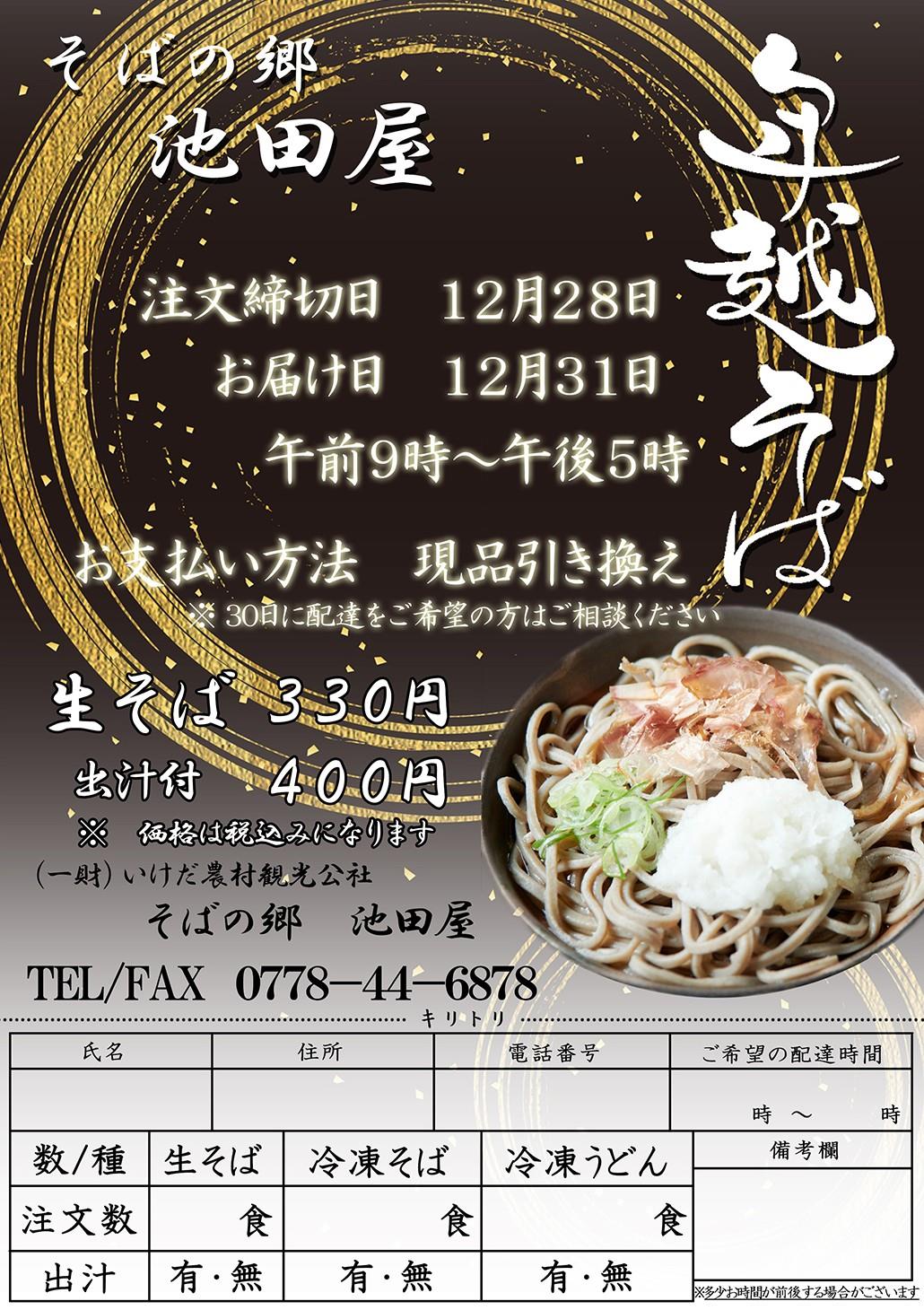 「そばの郷 池田屋」年越しそば(12月28日(日)お申込締切)