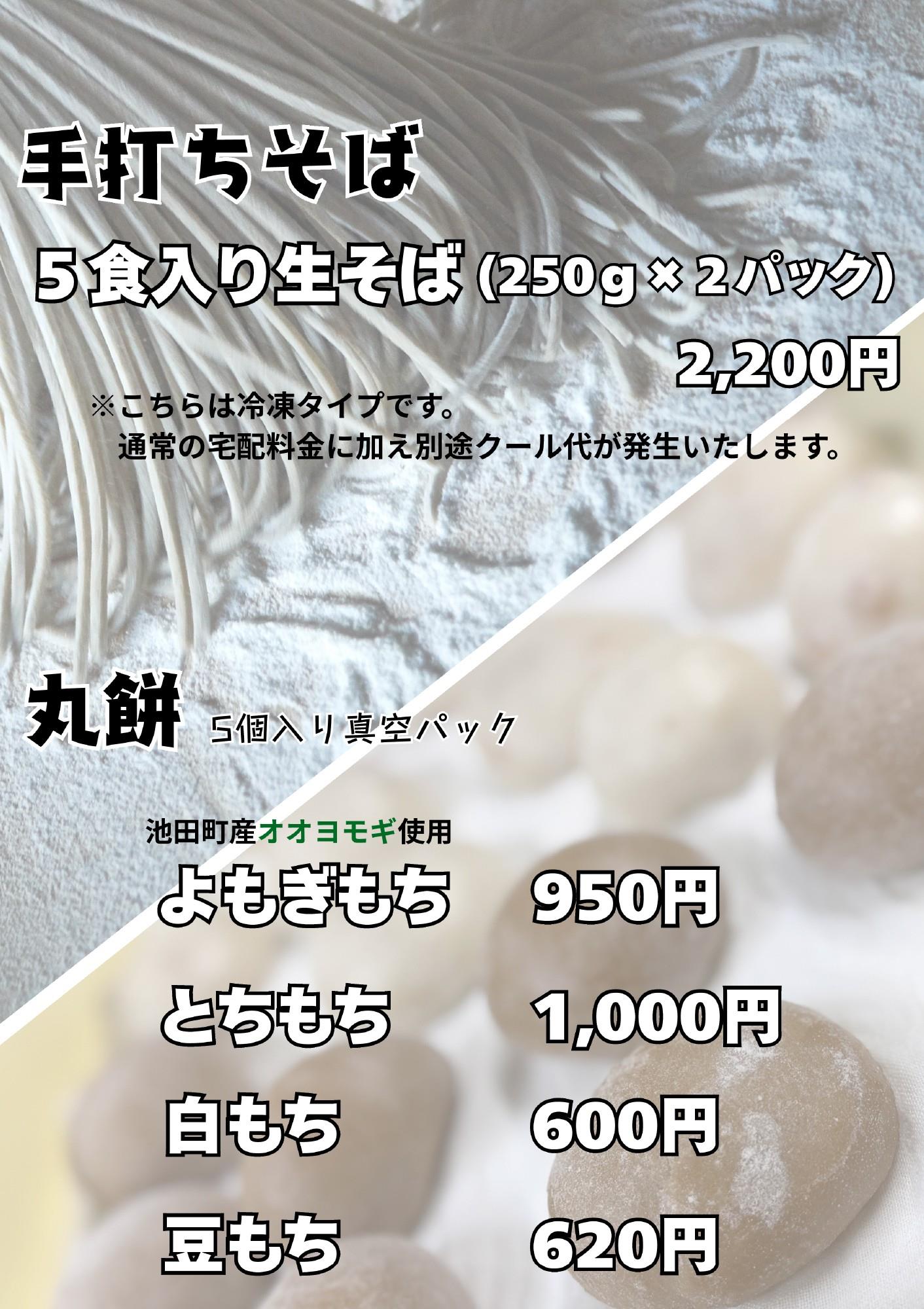 職人が打った香り高い「手打ちそば」と、町産オオヨモギなどを使った「お餅」。