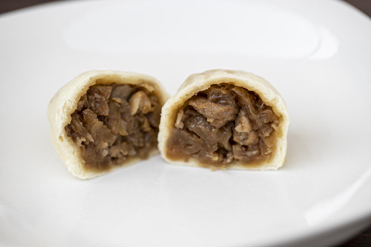 池田町産の野菜を使用。薄皮の中に具がぎっしりつまった、もちもちっとした食感の玉のようなまんじゅうです。豚だいこん、じゃがカレー、そして新作のかぼちゃあんとよもぎあん、4つの味を食べ比べできます(各200円)。
